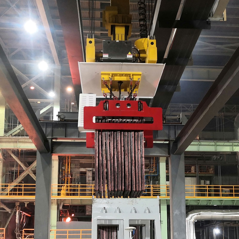 為實(shí)現(xiàn)電解陽極銅智能吊運(yùn),奧力通起重機(jī)團(tuán)隊(duì)自主研發(fā)的專用智能吊具。這套陽極銅自動吊智能系統(tǒng)的成功交付,為我國電解銅行業(yè)自動化設(shè)備升級開啟了新的旅程,引領(lǐng)行業(yè)再獲新突破。